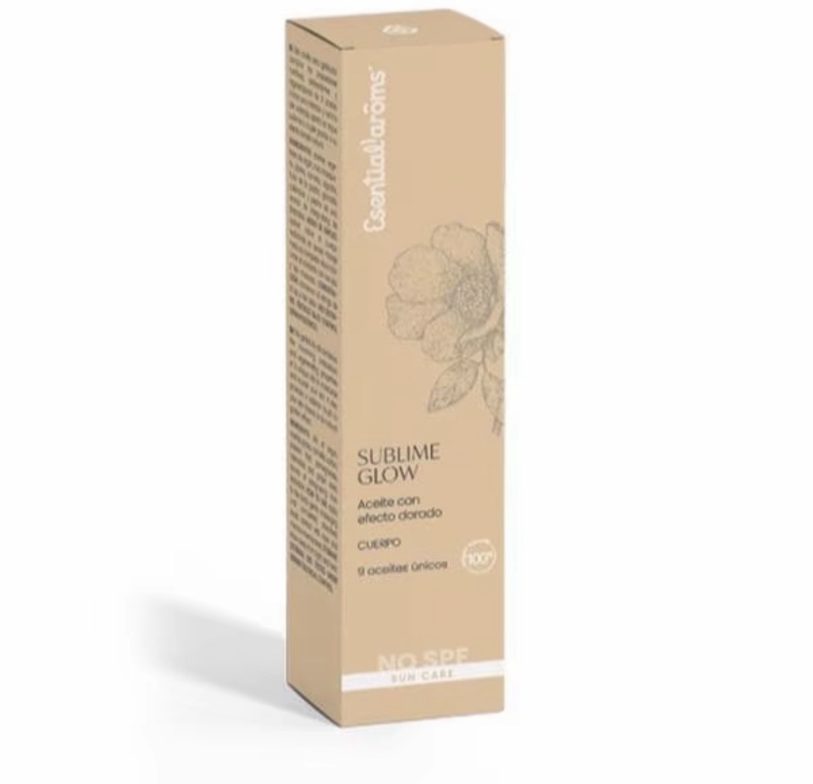 9 aceites: argán, rosa mosqueta, jojoba, camelia, algodón, fruto de la pasión, granada, caléndula y pepita de uva, efecto dorado natural, y aroma de ylang-ylang de las Barbados.