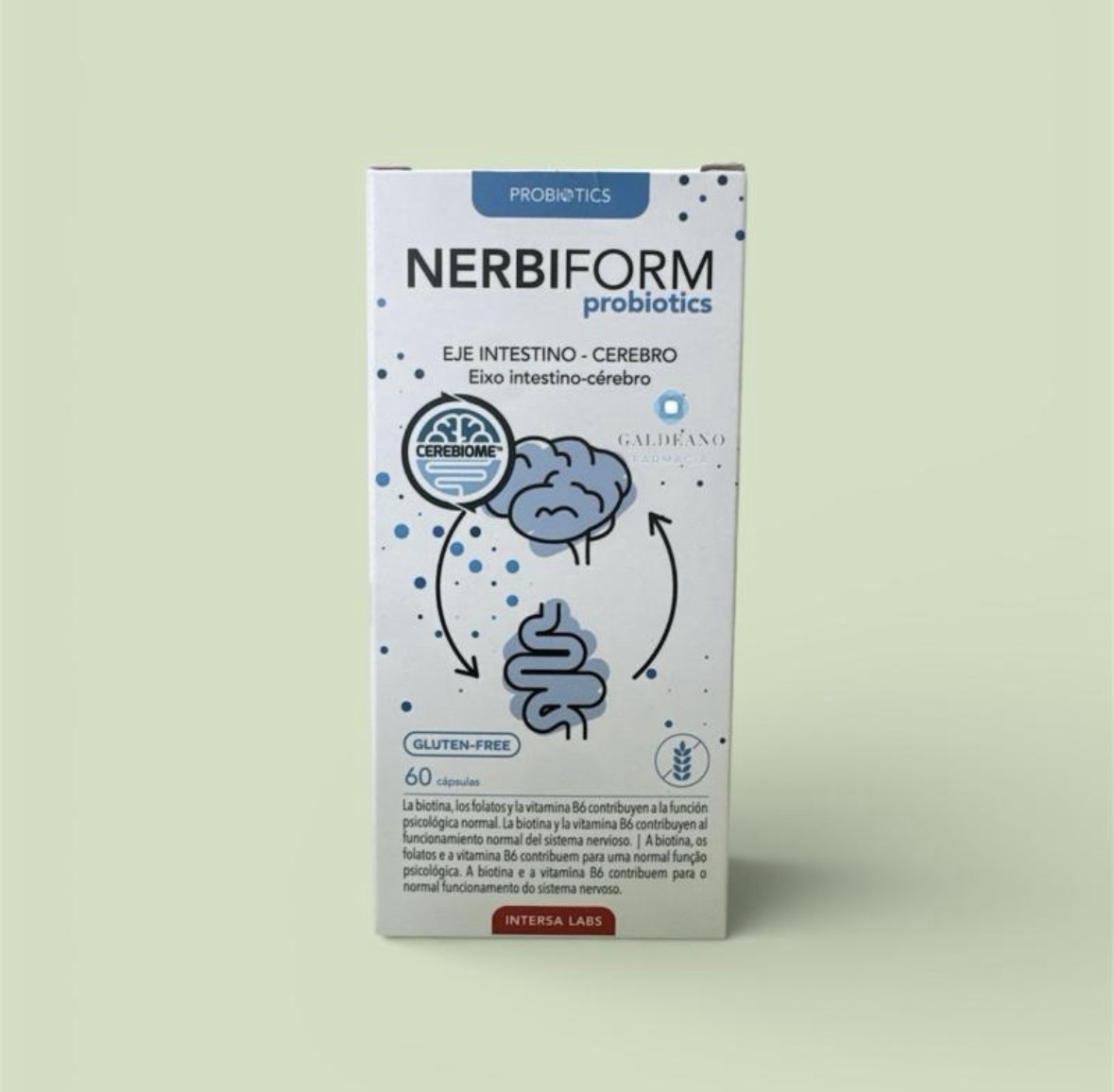 COMPLEMENTO ALIMENTICIO A BASE DE CEREBIO-ME® (PROBIÓTICOS), ÁCIDO FÓLICO, VITAMINA B6 Y BIOTINA. INGREDIENTES: CEREBIOME® (Lactobacillus hel-veticus Rosell°-52; Lacticaseibacillus rhamnosus GG, Bifido-bacterium longum Rosell®-175); agente de recubrimiento (hi-droxipropilmetilcelulosa); antiaglomerante (sales magnésicas de ácidos grasos); antioxidante (ácido ascórbico); clorhidrato le piridoxina (vitamina B6), D-biotina (biotina), ácido pte-oilmonoglutámico (ácido fólico), almidón de patata. DOSIS DIARIA RECOMENDADA Y MODO DE EMPLEO: tomar 1 cápsula por la mañana y otra por la noche. ADVERTENCIAS: no superar la dosis diaria expresamente recomendada. Los complementos alimenticios no deben utilizarse como sustitutos de una dieta variada y equilibrada y un estilo de vida saludable. Mantener fuera del alcance de los niños más pe-queños. Conservar en un lugar fresco y seco a temperatura inferior de 25°C, a mayor temperatura conservar en el frigori-fico. 60 CÁPSULAS. CANTIDAD NETA: 28,56 g.